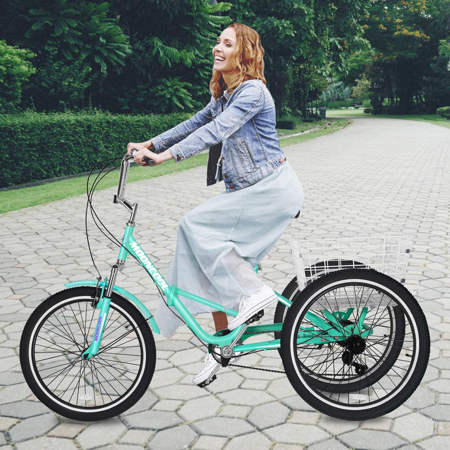 About this item 【FOLDING ADULT TRICYCLES】- With a twist and pull of a quick release lever Our tricycle can be folded in half easily and efficiently for easy move and storage. This folding tricycle will be a practical tool in your daily life; 【SIZE REFERENCE】-20" wheel tricycle suitable for rider height: 4'8"-5'4"; 24" wheel tricycle suitable for rider height: 4'11"-5'9"; 26" wheel tricycle suitable for rider height: 5' 3"-6'2". 【7-SPEED Derailleur】- Equipped with 7-speed trigger shifters and derailleur. Provides a wide range of gears and smooth shifting, making your riding safer and more enjoyable; 【STURDY 3 WHEEL DESIGN】-The tricycle is made of high-quality steel and can support a total weight of 320 pounds for the rider and cargo. In addition to the practicality of the tricycle, the tricycle design ensures safe and stable driving, and the frame will remain strong and stable; 【LARGE CAPACITY BASKET】- Our tricycle has a large rear basket, which is convenient for shopping and loading enough things. Perfect for leisure, shopping, exercise or any time/place you want;
