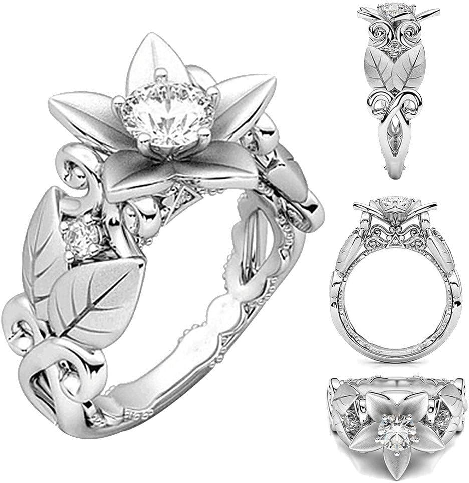 Auwer Clearance Rings, Women's Silver Floral Transparent Diamond Flower Vine Leaf Rings Engagement Wedding Rings Ladie's Jewelry Gift