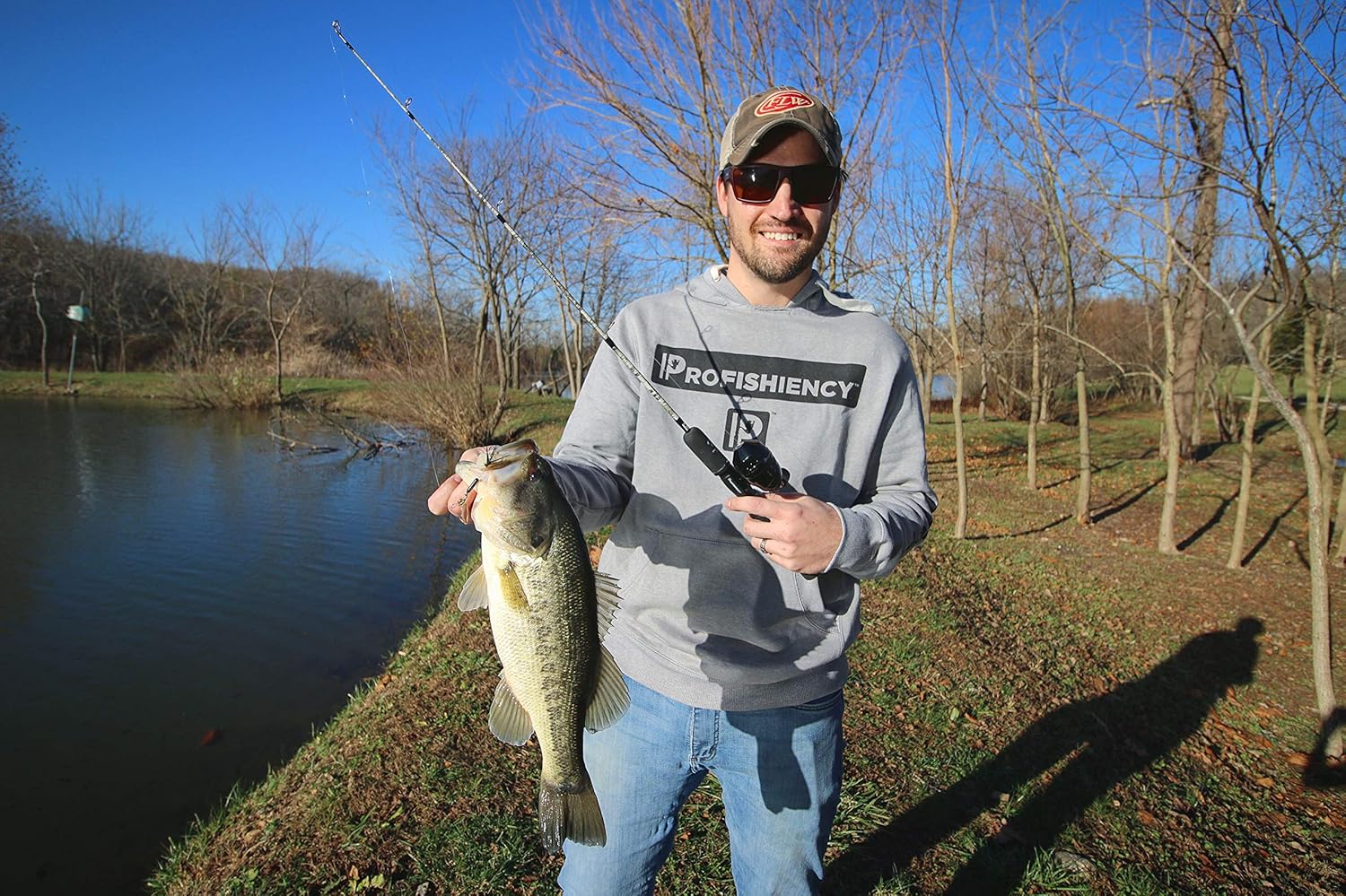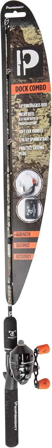 ProFISHiency Camo Dock Fishing Combo | 34" Fiberglass Rod | Micro Spincast Reel w/ 4:1:1 Gear Ratio | Pre-spooled w/ 6lb line, Incl. Mini Spinnerbait & Casting Plug