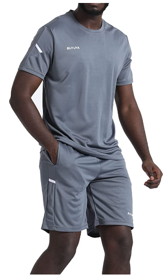BUYJYA Men's Workout Wear Sports Shorts Shirt Set 3 Pack for Basketball Football Workout Training Running Gym