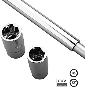• 1/2" header, 17mm (11/16"), 19mm (3/4"), 21mm (13/16"), 22mm (7/8") socket sizes.