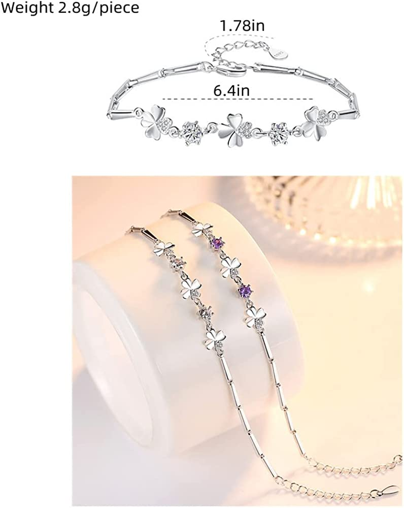 Clear Cubic Zirconia Heart Clover Flower Bracelet For Women Girls 14K White Gold Plated Cubic Zirconia Birthstone Heart Pendant Adjustable Rectangular Bamboo Chain Fashion Exquisite Jewelry Gifts Birt