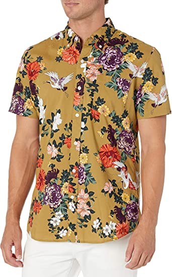 GoodThreads Men's Regular Fit Short Sleeve Printed Poplin Shirt