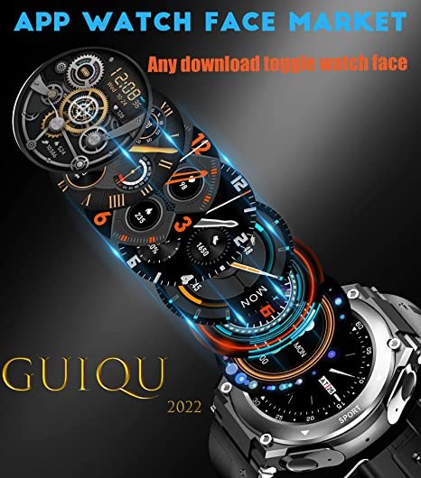 GUIQU Smart Watch with Bluetooth Headphones, Wireless Headphones 6D Stereo, 1.3 Inch Touch Screen, IP67 Waterproof GPS Sports Watch, with Talking, Men's Fitness Watch Tracker (Sci-Fi Silver)