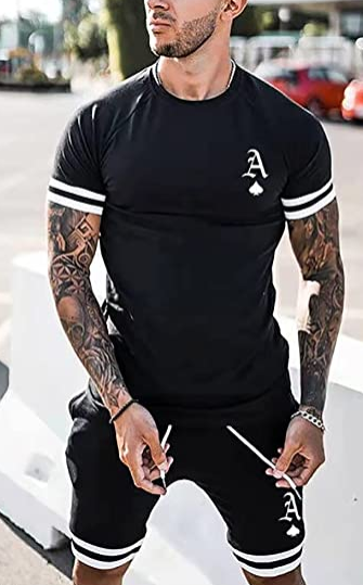 Men's Statement Tracksuit Summer Outfit 2 Piece Short Sleeve T-Shirt and Shorts Fashion Casual Tracksuit Set