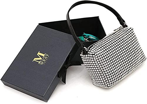 Montana West Crystal Rhinestone Crossbody Bag Women's Shiny Wallet Mini Top Handle Tote Chain Mesh Clutch For Parties, Medium